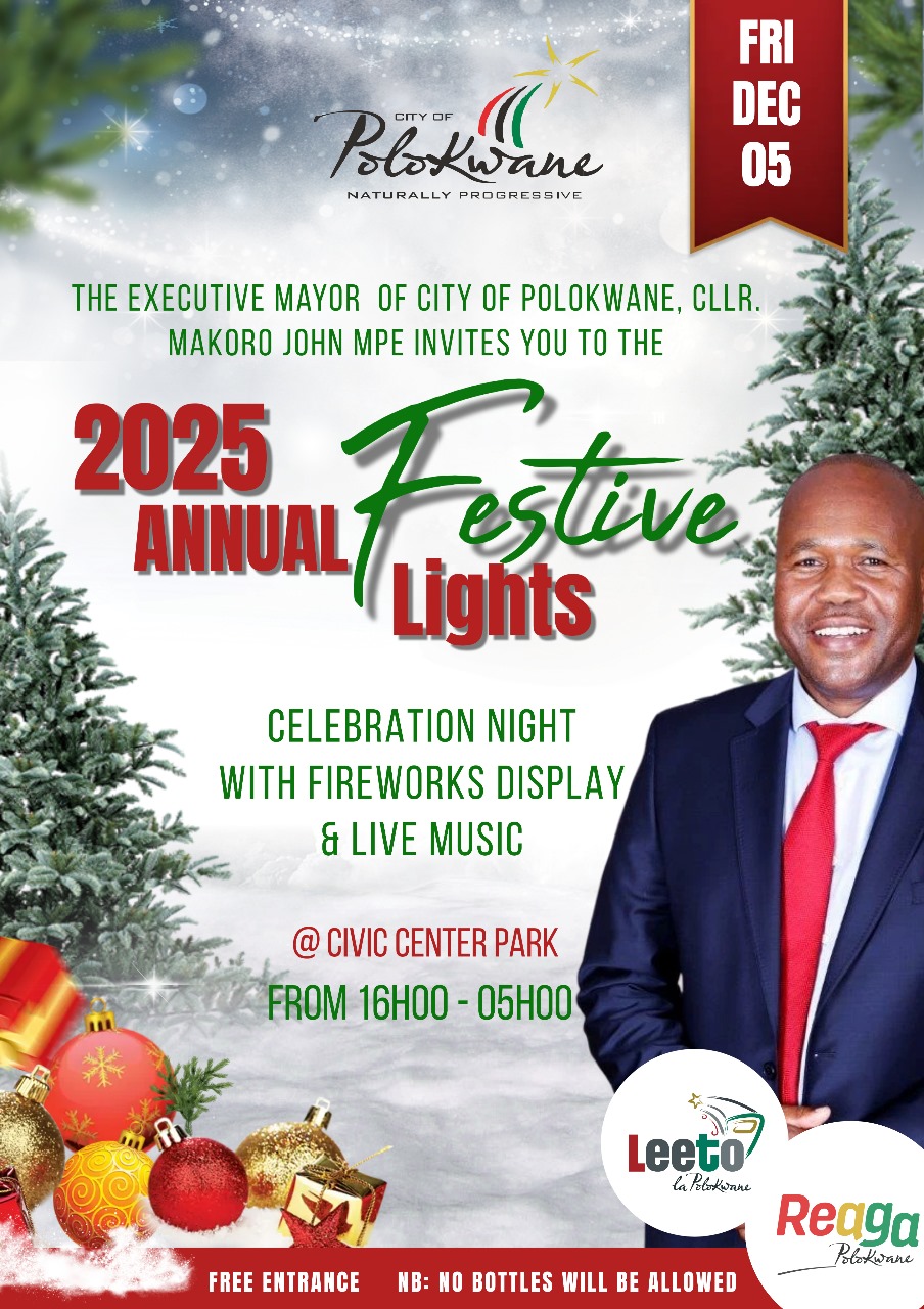 THE EXECUTIVE MAYOR OF THE CITY OF POLOKWANE CLLR. MAKORO JOHN MPE INVITES YOU TO THE 2025 ANNUAL FESTIVE LIGHTS