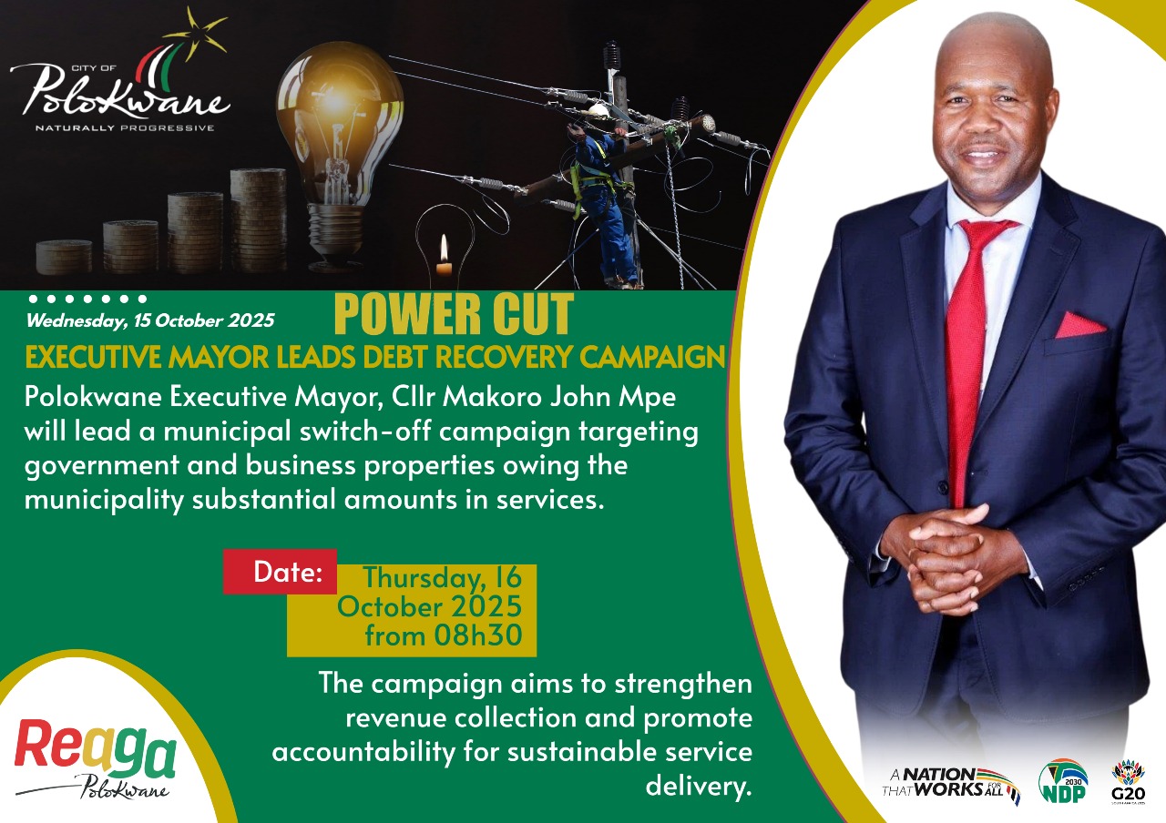 #ReagaPolokwane | REVENUE PROTECTION IN ACTION IN POLOKWANE The early morning chill on Hans van Rensburg Street didn’t stop the municipality’s determined revenue protection team from making their first decisive moves. The switch-off campaign, led under the directive of the Executive Mayor, Cllr Makoro John Mpe began with two heavyweight defaulters, both government departments. First …