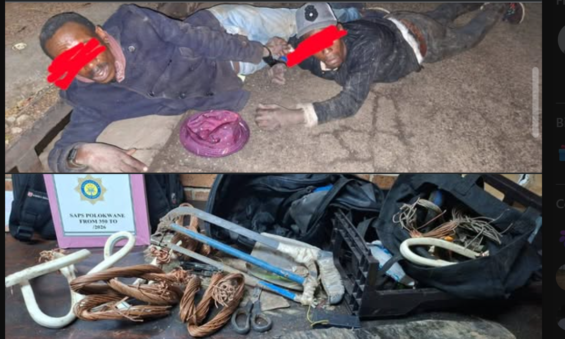LOCAL “CABLE COLLECTORS” BUSTED So, these two enterprising gentlemen from Ga-Mashashane decided to take a casual morning “shopping spree” near Tom Naude Park with no receipts, no permission, just very questionable luggage. Unfortunately for them, their idea of retail therapy involved a bundle of electric cables, a hacksaw and a slasher knife… basically, the …